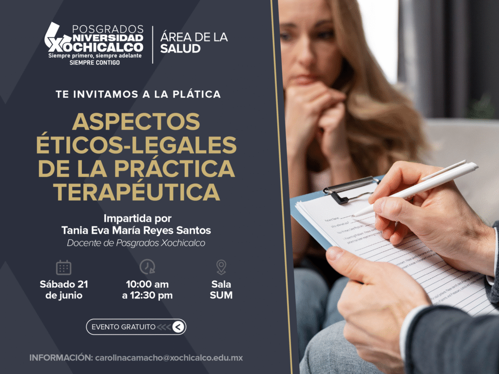 Este foro académico reúne a profesionales y estudiantes de posgrado en torno a la plática “Aspectos éticos-legales de la práctica terapeuta”, impartida por un experto en el área. Se abordarán temas clave sobre la responsabilidad legal, los dilemas éticos en la intervención clínica y las buenas prácticas que todo terapeuta debe conocer.